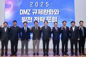 [경남도민뉴스=류종길 기자] 강원특별자치도는 11월 27일 오후 2시 강원연구원 리버티홀에서 「2025 DMZ 규제완화와 발전전략 포럼」을 개최했다고 밝혔다. 이번 포럼은 강원특별자치도가 주최하고 강원일보사가 주관하며, 강원특별법 시행을 계기로 본격화된 규제완화와 함께 접경지역을 제약의 공간에서 기회의 중심지로 재정의하고 새로운 발전 전략을 모색하기 위해 마련됐다. 포럼에는 김진태 도지사를 비롯해 지역주민, 전문가, 접경지역 시군 관계자 등 100여 명이 참석해 접경지역 발전 방안에 대한 다양한 의견을 나눴다. 포럼은 김열수 안보전략실장(한국군사문제연구원)의 기조강연 ‘이재명 정부 출범 이후 남북관계 전망’을 시작으로, 김창환 교수(강원대학교)의 ‘접경지역 규제완화에 따른 지역발전의 실천적 전략’ 주제발표가 이어졌다. 종합토론에는 ▲양철 연구위원(강원연구원) ▲김진무 전(前) 북한센터장(국방연구원) ▲김덕용 속초시 번영회장 ▲류종현 교수(강원대학교)가 참여하여, 규제완화 이후 접경지역의 변화와 전략, DMZ 생태·기술 융합 자산화 방안, 주민 삶의 질 향상과 거버넌스 혁신, 軍·지자체 협력 및 안
