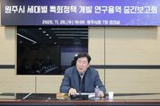 [경남도민뉴스=류종길 기자] 원주시는 지난 26일 시청에서 ‘원주 세대별 특화정책 개발 연구용역’ 중간보고회를 개최했다. 이번 보고회는 ‘원주에서 태어나고 자라 일하고, 결혼하고, 아이를 키우며 노후를 보내는 도시’ 구현을 목표로, 시민의 전 생애 주기 관점에서 세대별 정책 수요를 분석하고, 특화 정책 개발·연구 진행 현황과 향후 정책 방향을 점검하기 위해 마련됐다. 연구에서는 2040·4050·6070 세대 구분과 신도시권·구도심·농촌 지역권을 고려한 심층 면담을 진행했다. 또한 원주시 기본 정책 환경을 분석하고, 타 지자체의 정책개발 성공·우수사례를 조사해 정책 시사점을 도출했다. 연구에서 제시된 주요 정책 방향은 ▲아동·청소년 성장환경 강화 ▲청년층 정주·취업 전략 ▲중장년층 생애 전환 지원 ▲노년층 사회참여 및 돌봄 확대 ▲전 세대 공통 교통 인프라 개선 등이다. 원주시는 이번 보고회를 통해 도출된 세대별 요구와 정책 후보들을 면밀히 검토해 실효성 있는 특화 정책을 마련할 계획이다. 또한 시민 의견 수렴 등을 거쳐 실제 시정에 적용할 수 있는 구체적 실행 과제도 도출할 예정이다.