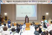 [경남도민뉴스=김용욱 기자] 도성훈 인천광역시교육감은 19일 제물포고등학교 춘추관에서 열린 제물포고등학교 부설 방송통신고등학교 개교 50주년 및 비전 선포식에 참석해 축사를 전하며, ‘읽걷쓰와 AI 융합 교육이 함께하는 평생학습의 미래 비전’을 제시했다. 이날 행사에는 고흥선 방송통신고 교장, 박창호 인천시의회 의원 겸 초대 동문회장 등 주요 인사들이 함께했으며, 방송통신고 졸업생들이 영상 메시지를 통해 축하와 격려를 전했다. 도 교육감은 “인천이 300만 도시로 성장하며 질적 도약을 이루는 중요한 시점에, 평생학습을 선도하는 제물포고 방송통신고가 매우 자랑스럽다”며 “제물포고 방송통신고가 인천의 평생학습을 이끌며 우리 지역의 미래를 한층 더 밝게 만들어가고 있다”며 학교의 가치를 강조했다.