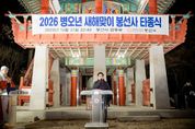 [경남도민뉴스=김동규 기자] 진접읍 봉선사에서 2026년 희망 가득한 새해를 기원하는 제야의 종소리가 울려 퍼졌다. 남양주시의회(의장 조성대)는 31일 진접읍에 위치한 대한불교조계종 제25교구 봉선사(주지 호산스님)에서 열린‘2026년 봉선사 새해맞이 타종식’에 참석해 시민들과 함께 병오년(丙午年) 새해의 힘찬 출발을 함께했다. 봉선사가 주관한 이날 행사는 조성대 의장을 비롯해 이정애 부의장, 이경숙 복지환경위원장, 김지훈(국) 의원, 김동훈 의원, 이수련 의원, 김상수 의원, 손정자 의원 및 주광덕 남양주시장, 지역 국회의원, 봉선사 관계자 및 신도, 지역주민 등 300여명이 참석했다. 행사는 송년법회를 시작으로 △교구장 호산스님의 인사말씀 △새해 덕담 및 송년 인사 △발원문 △봉선사 대종 소개 △타종 순으로 진행됐으며, 한파로 인한 추운 날씨 가운데서도 타종식에 참석한 시의원들과 시민들은 덕담과 따뜻한 온기를 나누며 훈훈한 새해를 함께 맞이했다. 특히, 주요 내외빈의 타종 이후 일반 시민들도 함께 타종자로 참여하는 순서를 마련해 새해맞이 타종식의 의미를 더했다. 조성대 의장은 “시