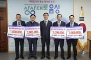 [경남도민뉴스=박만수 기자] 음성군은 지난 20일 군수 집무실에서 관내 5개 기업체가 1000만원 상당의 후원금품을 음성군장애인체육회(회장 조병옥)에 기탁했다고 밝혔다. 이번 기탁에는 △(주)제일참 300만원 △(주)21세기소방 200만원 △(주)창영케미칼 200만원 △성본산업단지(주) 라면 등(200만원 상당) △은찬종합건설(주) 100만원 등 총 5개의 기업이 후원금품을 전달했다. 기탁받은 후원금품은 장애인 체육시설 개선, 훈련비 지원, 장애인 체육 프로그램 지원 등 음성군 장애인 체육 발전을 위해 사용될 예정이다. 기업 대표들은 “지역 장애인 체육 활성화를 위해 기업의 사회적 책임을 다할 수 있어서 뜻깊다”며 “관내 장애인들이 체육활동을 통해 건강한 삶을 이어가고, 꿈을 키울 수 있도록 계속 관심을 가지고 지원하겠다”고 밝혔다. 조병옥 음성군장애인체육회장은 “관내 기업들의 장애인 체육 저변확대를 위한 지속적인 관심과 지원에 감사드린다”며 “기탁된 후원금은 장애인들의 체육 참여 확대와 역량 강화 등 현장 중심 지원으로 소중히 사용하고, 내년 충북장애인도민체육대회의 성공적 개최를 위해 노력하겠다”