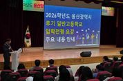 [경남도민뉴스=최재경 기자] 울산광역시교육청은 ‘2026학년도 울산광역시 후기 일반고등학교 입학 전형 요강 학부모 설명회'를 열고 고입 정보를 안내했다. 30일 울산과학관 빅뱅홀에서 열린 설명회에는 중학교 3학년 학부모와 교육청 관계자 등 100여 명이 참석했다. 이날 울산교육청은 후기 일반고 입학 전형 학생 선발 방법과 배정에 대한 주요 내용을 안내했다. 중학교 내신성적은 교과 영역 80%와 비교과영역 20%를 합산해 산출한다. 교과 영역의 학년별 반영 비율은 2학년 40%, 3학년 60%를 반영한다. 비교과영역은 출석성적 40%, 봉사활동 성적 20%, 행동 발달 상황 성적 20%, 창의적 체험 활동 성적 20%를 합산해서 산출한다. 후기 일반고 학생 배정은 희망 배정과 임의 배정으로 나뉜다. 희망 배정은 1단계 전체 학군에서 20%, 2단계 거주 학군에서 40%로 나눠 추첨하며, 희망 배정에서 탈락한 학생은 통학 여건 등을 고려해 거주 학군, 인접 학군에 배정된다. 학생 선발은 중학교 내신성적에 의해 남녀 구분 없이 고등학교 수용 인원만큼 선