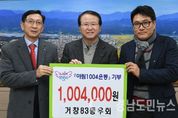 (거창/최병일) = 거창군 83동우회(회장 윤기)는 지난 6일 거창군청을 방문해 아림1004운동에 1,004,000원을 기탁했다. 윤기 회장과 회원들은 “오랫동안 다져온 우정으로 서로가 한마음이 돼 어려운 이웃을 위하여 기부하게 됐다. 이번 기부참여가 추운 겨울을 밝힐 수 있는 뜻있는 작은 불씨가 되길 바라며 앞으로도 어려운 이웃을 위한 다양한 기부사업에 참여하겠다”고 밝혔다. 83동우회는 회원수가 총 76명, 70년생 개띠 모임으로 단체가 설립된 지 20년이 됐다.