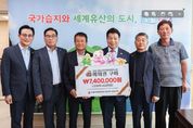 [경남도민뉴스=김태수 기자] 고성문화관광재단은 (사)전국 이통장연합회 경상남도지부 고성군지회가 '2025경남고성공룡세계엑스포'의 성공적인 개최를 위해 9월 23일 740만 원 상당의 예매권을 구입했다고 밝혔다. (사)전국 이통장연합회 경상남도지부 고성군지회 배삼태 회장은 “올해의 공룡엑스포는 어린이뿐만 아니라 중장년층이 즐길 수 있는 대형 플라워사우루스, 플라워 동산, 중국 서커스 등 세대를 아우르는 콘텐츠를 준비하는 것으로 알고 있다며, 고성 관내 읍면의 이장님들과 군민들이 엑스포 행사장을 꼭 방문하기를 바란다”라고 말했다. 한편, 2025경남고성공룡세계엑스포는 10월 1일부터 11월 9일까지 40일간 진행되며, 사전예매 할인권 판매를 지난 5월 1일부터 시작했다. 예매권은 행사 시작 하루 전인 9월 30일까지 할인된 금액으로 구매할 수 있으며, 대인은 14,000원, 소인은 7,000원에 구매 가능하다. 올해 엑스포는 “공룡과 함께 춤을”이라는 주제로, 남녀노소 누구나 즐길 수 있는 다양한 콘텐츠로 채워진다. 국내 최초로 익룡이 나는 모습을 실제로 볼 수 있는 ‘익룡이 날다’, 꽃으