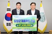 [경남도민뉴스=최인태 기자] 담양군은 18일 군청에서 NH농협 제휴카드 적립기금 전달식을 개최했다. 이번에 전달된 적립기금은 약 4,700여만 원으로, 담양군과 NH농협 간 제휴카드 협약에 따라 조성됐다. 이 기금은 카드 이용 실적에 따라 NH농협에서 조성해 매년 담양군에 전달하는 것으로, 군이 지난 한 해 공무 수행에 사용한 보조금 전용카드와 소속 공무원의 복지카드, 각종 단체에서 발급한 보조금 카드 이용 금액의 0.1~1.0%가 포인트로 적립돼 마련됐다. 군은 전달받은 기금을 세입 처리해 지역사회 발전과 군민 복리 증진을 위한 재원으로 활용할 계획이다. 정철원 군수는 “NH농협과의 협력을 통해 조성된 소중한 기금인 만큼 군민 복리 증진과 지역 발전을 위해 의미 있게 사용하겠다”며 “앞으로도 NH농협 담양군지부가 지역사회와 상생하며 함께 발전해 나가길 기대한다”라고 말했다.