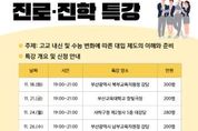[경남도민뉴스=김채연 기자] 부산광역시학력개발원은 오는 11월 18일부터 12월 1일까지 5회에 걸쳐 부산 관내 5개 권역에서 예비 고1 학생과 학부모 1,200여 명을 대상으로 ‘성공적인 고교 생활을 위한 진로·진학 특강’을 개최한다. 이번 특강은 고교 내신과 대입제도 변화에 맞춰 학생과 학부모의 이해를 돕고, 고교 진학 전에 진로 방향을 구체적으로 세우며 체계적인 학습 계획을 설계할 수 있도록 지원하기 위해 마련했다. 강의는 ▲학교폭력 조치사항 반영 ▲전공자율선택제 확대 ▲계약학과 신설 ▲고교 과목이수 정성평가 도입 등 대입전형의 주요 변화 사항을 중심으로 진행되며, ‘2028학년도 대입제도 이해와 준비’ 등 다수의 진학 관련 강연을 진행해 온 부산진로진학지원센터 강동완 센터장이 강사로 참여한다. 참가 희망자는 오는 31일 오후 2시까지 부산진로진학센터 홈페이지를 통해 신청하면 된다. 온윤주 학력개발원장은 “이번 특강은 변화하는 대입 환경 속에서 학생과 학부모가 고교 생활의 방향성을 조기에 설정할 수 있도록 돕는 의미 있는 자리”라며, “앞으로도 학생이 스스로 진로를 탐색하고 미래를 설계할 수