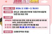 [경남도민뉴스=최인태 기자] 진도군은 설 명절을 맞아 고향사랑기부제의 참여를 확대하고 지정기부사업을 홍보하기 위해 2월 1일부터 18일까지 ‘설맞이 세배 드림 이벤트’를 진행하고 있다. 이번 이벤트는 설 명절의 의미를 담아, 진도군 고향사랑기부제 지정기부사업에 10만 원 이상을 기부한 기부자를 대상으로, 추첨을 통해 특산품 2종(진도 홍주, 진도 곱창김)을 추가 제공해, 총 3종 이상의 진도 특산품을 제공하는 ‘세배 드림’ 행사다. 이에 따라 지정기부사업 기부자는 세액공제 혜택은 물론, 기부금 30% 상당의 답례품을 포함해 총 3종 이상의 특산품을 받을 수 있다. 진도군의 지정기부사업은 ‘보배섬 진도의 아이들을 지켜주세요!’ 사업으로, 진도군 지정병원의 소아청소년과 의료진에 대한 인건비를 지원해 지역 의료 기반(인프라)을 강화하기 위한 목적으로 추진되고 있다. 진도군은 이번 이벤트를 통해 지정기부사업에 대한 관심을 높이고, 기부금이 지역의 시급한 의료 현안을 해결하는 데 활용되도록 할 계획이다. 김희수 진도군수는 “설 명절을 맞아 기부의 의미를 느끼고 혜택을 누릴 수 있도록 상생 이벤트