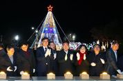 [경남도민뉴스=장광동 기자] 함양군은 12월 1일 오후 5시, 문화예술회관 소공연장에서 크리스마스트리 점등식을 개최했다. 이번 행사에는 진병영 함양군수, 김윤택 군의회의장, 김재웅 도의원, 군의원, 곽성무 기독교연합회장(옥당한사랑교회) 등을 비롯한 100여 명의 군민이 참석했다. 점등식 행사는 팬플룻, 우쿨렐레, 하모니카, 색소폰 연주, 캉구댄스 축하공연 등으로 시작해, 찬송과 기도, 성경 낭독, 특송, 설교 순으로 진행됐으며, 마지막에는 크리스마스트리를 점등하여 희망과 사랑의 메시지를 전했다. 또한 이날 행사와 함께 함양군기독교연합회는 이날 이웃돕기 성금을 기탁하며 나눔을 실천했다. 기탁된 성금은 경남사회복지공동모금회를 통해 관내 취약계층과 복지 사각지대에 있는 주민을 지원할 계획이다. 점등식에 함께한 진병영 함양군수는 “추운 겨울이지만, 크리스마스트리의 따뜻한 불빛이 군민에게 희망과 용기를 전해주길 바란다”라며, “앞으로도 군민과 함께하는 함양, 서로를 배려하는 따뜻한 지역사회를 만들어가겠다”라고 말했다. 크리스마스트리는 함양나들목 로터리, 상림 고운광장 입구, 한들로 로터리 등 3