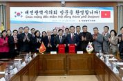 [경남도민뉴스=도문호 기자] 대전시의회는 25일, 베트남 호치민시 인민의회 대표단을 공식 접견하고, 양 도시 의회 간 교류의향서를 체결하며 상호 협력 기반을 강화했다고 밝혔다. 이번 방문은 호치민시 인민의회가 대전을 직접 찾은 첫 사례로, 경제성장률이 높은 베트남과의 교류를 강화하는 교두보가 될 것으로 기대된다. 대전시의회 조원휘 의장은 이날 오후 3시 대전시의회 소통실에서 보반민 의장을 단장으로 하는 호치민시 인민의회 대표단을 접견했다. 이 자리에는 대전시의회 김영삼·황경아 부의장을 비롯해 이한영 운영위원장과 이효성 복환위원장, 이금선 교육위원장, 민경배 윤리특별위원장, 이재경 대전충남행정통합특별위원장도 참석해 공식 환담을 가졌다. 대표단은 보반민 의장 외에도 재정·예산, 법제, 문화·사회, 도시위원회 등 주요 상임위원장과 주한 베트남 대사관의 참사관, 호치민시 외교국 및 사무처 간부진, 베트남 대표 투자기업인 베카맥스 그룹 관계자 등 총 19명으로 구성됐다. 이 자리에서 양측은 대전과 호치민시 간 실질적 의회 교류 추진과 산업·기술·문화 분야에 대한 협력 확대 방안을 논의했으며, 교류의향서를 체