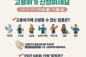 [경남도민뉴스=백형찬 기자] 외국인근로자(E-9)와 함께 일하고 싶은 사업장은 고용허가 신청하세요. - 신청기간 2025.11.24.(월)~11.28.(금) ■ 고용허가제 신청할 수 있는 업종은? 제조업, 조선업, 건설업, 농축산·어업, 서비스업, 임업, 광업 고용허가서 발급신청서를 작성하여 고용24 누리집 또는 고용센터에 제출하세요. ■ '25년 5회차 신청 일정은? '25.11.24.(월)~11.28.(금): 사업장 고용허가 신청 → 12.12.(금): 사업장 선정 발표 → 제조·조선·광업 12.15.(월)~17.(수) 그 외 12.18.(목)~12.22.(월): 고용허가서 발급 → '26.1월~: 외국인 근로자 입국