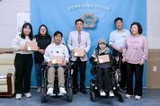 [경남도민뉴스=박만수 기자] 옥천군의회는 지난 14일 의장 집무실에서 충북형 최중증장애인 권리중심일자리 사업 참여자들이 직접 제작한 굿즈를 전달받는 자리를 가졌다. 충북형 최중증장애인 권리중심일자리사업은 18세 이상 미취업 중증장애인에게 맞춤형 공공일자리를 제공하는 사업으로, 참여자들은 문화예술·인식개선·권익옹호 활동을 수행하며 지역사회에서 당당한 노동자로 활동하고 있다. 이날 전달식에는 ㈜우리동네 박수정 대표와 권리중심일자리 참여자인 김병석·이수진 씨가 참석했으며, 권리중심일자리 사업 운영현황과 애로사항 등에 대해 집행부와 함께 의견을 청취했다. 추복성 의장은 “최중증장애인분들이 직접 제작한 굿즈를 받게 되어 매우 뜻깊게 생각한다.”며 “이 사업이 단순한 일자리를 넘어 장애인의 권리를 지키고 사회참여를 확대하는 의미 있는 활동으로 지속되기를 바란다.”라고 격려했다.