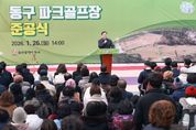 [경남도민뉴스=최재경 기자] 울산 동구는 1월 26일 오후 2시 동구 동부동 99-15번지 일원에 지역 주민 150여 명이 참석한 가운데 동구파크골프장 준공식을 개최했다. 동구파크골프장은 안정적인 생활체육 공간 조성을 통하여 주민들의 체력 증진과 건강한 삶을 위하여 총면적 23,466㎡의 규모에 18홀과 부대시설을 조성했다. 시설 조성을 위해 총사업비 73억 5천만 원이 투입됐으며, 2023년 6월 개발제한구역 관리계획 미반영 시설 승인 후 2024년 1월 도시관리계획 결정, 2024년 11월 도시계획시설 실시계획인가, 2025년 4월 공사 착공 및 12월 준공됐다. 한편, 파크골프장을 최상의 상태로 주민들이 이용할 수 있도록 잔디 활착 및 생육을 위해 상반기에는 운영하지 않고 하반기에 개장할 계획이다. 김종훈 동구청장은 “동구파크골프장 준공으로 주민들의 건강 증진과 여가생활에 기여할 것으로 기대된다.”라고 말했다.
