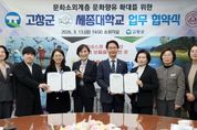[경남도민뉴스=최인태 기자] 고창군은 지난 13일 세종대학교(총장 엄종화)와 지역 내 문화소외계층의 문화접근성 향상과 문화향유 기회 확대를 위해 업무협약을 체결했다. 이날 협약식에는 고창군수, 세종대학교 인문-IT 융합연구원 김수연 원장, 인문대학 이경랑 학장, 고창군가족센터 정혜숙 센터장 등 기관 관계자들이 참석했다. 이번 협약으로 세종대학교는 AI 기반 문화교육 프로그램을 개발하고 고창군에 문화체험 콘텐츠를 제공한다. 특히, 다문화가정이 지역에 정착할 수 있게 언어 장벽을 해소할 수 있는 모듈형 공간을 마련하여 맞춤형 문화서비스를 지원할 예정이다. 또한 양 기관은 지원 대상을 점진적으로 확대해 다양한 문화소외계층이 문화 활동을 폭넓게 접할 수 있도록 프로그램을 지원해 나갈 방침이다. 고창군수는 “이번 협약은 문화소외계층의 문화 접근성을 높이고 지역사회 문화복지를 한 단계 확대하는 의미 있는 출발점이 될 것”이라며 “앞으로도 다양한 기관과의 협력을 통해 군민 누구나 문화적 가치를 누릴 수 있는 포용적 문화환경 조성에 힘쓰겠다”고 밝혔다.