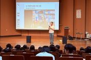 [경남도민뉴스=구인애 기자] 경상국립대학교 지속가능발전센터(센터장 김영철 회계세무학부 교수)는 7월 15일 가좌캠퍼스 예술관 콘서트홀에서 ‘제2차 GNU-SDGs/ESG 중학생 아카데미’를 개최했다. 이번 아카데미는 경상국립대학교 사범대학 미술교육과 박성식 교수와 음악교육과 김범기 부교수가 지역 청소년들에게 지속가능발전(SDGs)과 환경·사회·지배구조(ESG)를 깊이 있게 이해하는 기회를 제공하고 기존 정규 교육과 차별화된 경험을 제공하기 위해 마련했다. 박성식 교수는 한국화의 가치와 실생활에서도 자주 접하는 예술작품을 소개하며, 학생들이 한국화의 중요성을 깊이 있게 이해하는 기회를 제공했다. 김범기 교수는 AI와 예술이라는 주제로 인공지능이 예술 분야에 어느 정도로, 어떤 방식으로 사용되며 그것이 미치는 영향에 관해 강의했다. 강의에 참여한 학생은 “한국화의 특징과 그에 관련된 화가들, AI 발전에 대해 자세히 알 수 있어 좋았다.”, “우리나라에 명화의 수가 적다는 것을 보며, 적어도 우리나라의 명예를 위해서 돌려 받으려 노력해야 한다는 것을 느끼게 됐다.”라고 소감을 말했다. 김영