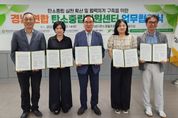 [경남도민뉴스=구인애 기자] 경상남도 탄소중립지원센터와 창원시·진주시·김해시·양산시 탄소중립지원센터는 7월 15일 경상남도 탄소중립지원센터에서 ‘2050 탄소중립 실현’이라는 공동 목표를 달성하기 위해 5자 간 ‘경남 연합 탄소중립지원센터 협의체’를 구성하고 공동발전을 도모하기 위한 업무협약을 체결했다. 이번 업무협약으로 각 센터는 상호 신뢰와 협력을 바탕으로 협의체를 운영하기로 했다. 특히 탄소중립 정책의 실효성 제고와 지역 간 발전을 도모하기 위해 기후위기 대응과 지속 가능한 발전에 필요한 다양한 공동사업을 추진할 계획이다. 협약식에는 경상남도 탄소중립지원센터 정판용 센터장을 비롯해 창원시 탄소중립지원센터 서애숙 센터장, 진주시 탄소중립지원센터 기서진 센터장, 김해시 탄소중립지원센터 강지윤 센터장, 양산시 탄소중립지원센터 오창석 센터장이 참석했다. 5개 기관은 협약서에서 ▲탄소중립 정책의 효율적 실행을 위한 전문성과 경험 공유 ▲온실가스 감축, 교육, 캠페인 등 공동사업 기획·추진 ▲공동 홍보·행사 운영 협력 ▲실무자 네트워크 구축 및 역량 강화 ▲정책자료·우수사례 공유 체계 운영 등에 협력하기도 했다. &