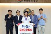 [경남도민뉴스=김용욱 기자] 인천 동구장애인체육회는 제19회 전국장애학생체육대회에서 우수한 성적으로 입상한 학생과 학교 지도자를 초대해 축하하고 격려했다고 밝혔다. 이날 격려 행사에는 제19회 전국장애학생체육대회에서 입상한 현도윤(동산고·육상 100m, 200m 은메달) 학생과 지도자가 참석했다. 대회는 5월 13일~16일까지 경상남도 김해 일원에서 열렸다. 김찬진 동구청장은 "장애를 딛고 끊임없이 도전한 선수의 열정과 노력이 자랑스럽다”며 “앞으로도 동구 장애학생들이 마음껏 도전할 수 있도록 체육활성화를 적극 지원하겠다”고 말했다. 한편, 동구장애인체육회는 지역 장애인들이 체육을 통해 건강한 삶을 누릴 수 있도록 장애인 탁구 교실과 수영 교실을 운영 중이며 앞으로도 다양한 종목의 생활체육 프로그램과 체육 활동을 지원할 예정이다.