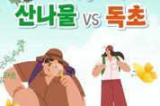 [경남도민뉴스=백형찬 기자] ① (나물) 더덕 · 덩굴성 다년초 · 뿌리가 도라지, 인삼 등과 비슷함 · 알싸한 독특한 향이 있음 · 뿌리는 가로로 주름져 있음 (독초) 미국자리공 · 뿌리는 주름지지 않고 매끈함 · 굵은 뿌리에서 줄기가 나옴 · 줄기는 자주색이며 높이는 약 1~1.5m · 향기가 나지 않음 ② (나물) 우산나물 · 잎의 가장자리가 잘게 갈라짐 · 잎이 깊게 2열로 갈라짐 (독초) 삿갓나물 · 줄기 끝에 잎 가장자리가 갈라지지 않음 ③ (나물) 곰취 · 날카로운 톱니 · 향이 좋음, 잎이 부드럽고 광택 없음 (독초) 동의나물 · 향이 없음, 잎 가장자리에 둔한 톱니 ④ (나물) 산마늘 · 마늘(부추) 향이 짙게 나고 잎 끝이 뭉툭하게 생김 · 그물 같은 갈색 섬유로 덮인 비늘줄기가 있음 (독초) 은방울꽃 · 잎 끝이 길게 뾰족하게 생김 · 비늘줄기가 없고 땅속에 길게 뻗는 땅속줄기가 있음 ⑤ (나물) 머위 · 잎에 털이 있고, 부드러움 (독초) 털머위 · 잎의 표면이 두껍고 짙음 · 잎의 색은 녹색, 윤채가 남 · 상록성