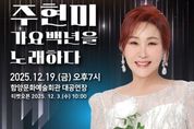 [경남도민뉴스=장광동 기자] 함양문화예술회관은 2025년 송년음악회 ‘주현미 가요백년을 노래하다!’를 오는 12월 19일 오후 7시 함양문화예술회관 대공연장에서 개최한다. 이번 송년음악회는 2025년도 한 해를 마무리하며 군민들이 가족과 함께 품격 있는 문화 공연을 즐길 수 있도록 마련된 특별 무대로, 한국 대중음악 100년의 흐름을 한 자리에서 감상할 수 있는 기획 공연이다. 데뷔 40주년을 맞은 가수 주현미는 시대를 관통해 사랑받아 온 명곡들을 중심으로, 1920년대부터 1980년대까지의 대표곡들을 ‘가요 100년’이라는 여정으로 풀어낼 예정이다. ‘황성옛터’, ‘대지의 항구’, ‘봄날은 간다’, ‘하숙생’ 등 시대별 노래에 곡의 배경 설명을 가미하여 관객의 몰입감을 높이며, 함께 떠나는 음악 여행을 선사할 것으로 기대된다. 표 예매는 오는 12월 3일 오전 10시부터 온라인(인터파크 및 함양문화예술회관 홈페이지, 12월 18일까지) 및 현장 결제(문화예술회관 1층, 12월 19일 공연 전까지)가 가능하다. 관람료는 1층 2만 원, 2층 1만 2,000원이며 8세 이상 관람할 수 있