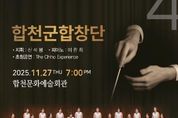 [경남도민뉴스=김춘호 기자] 합천군합창단은 오는 11월 27일 오후 7시부터 9시까지 합천문화예술회관 대공연장에서 ‘제24회 정기연주회’를 개최한다. 이번 연주회는 지역 주민들과 함께하는 음악 행사로, 합창단의 풍부한 음악성과 하모니를 선보이는 뜻깊은 무대가 될 것이다. 이번 공연은 한국 창작가곡, 대중가요, 영화음악 등 다양한 장르의 합창 공연과 초청 공연으로 구성돼 관객들에게 더욱 풍성하고 감동적인 음악적 경험을 선사할 예정이다. 관람은 사전 예약 없이 현장에서 자유롭게 입장할 수 있으며, 군민 누구나 부담 없이 참여할 수 있는 열린 공연으로 마련됐다. 합천군합창단의 제24회 정기연주회는 지역 문화 발전과 군민의 문화 향유를 확대하는 의미 있는 자리로, 관객들에게 오래 기억될 특별한 무대를 선사할 것으로 기대된다.