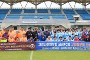 [경남도민뉴스=최인태 기자] 재경나주향우회 축구단과 나주지역 동호인 축구단 간의 친선 축구경기가 지난 24일 나주종합스포츠파크 종합운동장에서 열렸다. 이번 경기는 고향을 사랑하는 향우들과 지역민들이 스포츠를 통해 소통하고 우정을 나누는 뜻깊은 자리로 마련됐으며 윤병태 나주시장도 현장을 찾아 직접 선수단을 격려하고 경기 시작을 함께하며 자리를 빛냈다. 윤병태 나주시장은 “과거 나주는 영산강 문화를 토대로 2천 년간 호남의 중심지였고 이제는 나주시민과 전국의 출향 향우가 함께하여 에너지신산업의 중심지로 새로운 영산강 르네상스 시대를 향해 나아가고 있다”며 “오늘 친선경기를 통해 나주 공동체의 끈끈한 정과 저력을 느끼고 가길 바란다”고 말했다. 재경나주향우회 축구단인 ‘금성FC’ 황상현 단장은 “오랜만에 고향을 방문하여 지역민과 유대감을 느낄 수 있는 경기를 펼칠 수 있어서 뜻깊게 생각한다”며 경기를 함께 한 ‘나주 5060’ 축구단, ‘나주FC위민’ 축구단에 감사의 인사를 전했다. 또한 ‘나주 5060’축구단 정종환 단장은 고향을 방문한 향우들에게 “운동장에서 땀을 흘리며 스포츠를 통해서 하나되는 자리