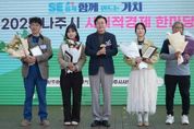 [경남도민뉴스=최인태 기자] 전라남도 나주시가 지역 사회적경제기업과 시민이 함께 참여하는 ‘2025 사회적경제 한마당’을 성황리에 개최했다. 나주시는 지난 15일 빛가람동 호수공원에서 ‘2025 나주시 사회적경제 한마당’ 행사를 성공적으로 마무리하며 지역 상생 가치 확산과 사회적경제 생태계 활성화에 힘을 모았다고 17일 밝혔다. 이번 행사는 나주시가 주최 및 주관하고 나주시사회적경제협의회가 후원해 사회적경제기업의 가치 확산과 시민 참여 확대를 목표로 열렸다. ‘SE롭게 함께 만드는 가치’를 주제로 사회적경제기업의 활동을 소개하고 시민 중심 체험프로그램을 결합한 다채로운 행사로 진행했다. 행사는 남평리마을부녀회와 한결후 해금 연주자의 식전공연을 시작으로 국민의례, 유공자 표창, 기념사, 퍼포먼스, 기념촬영 순으로 진행했다. 행사장에서는 사회적기업, 마을기업, 자활기업, 협동조합 등 지역 사회적경제기업이 참여해 제품 홍보와 판매를 위한 전시 부스를 운영했다. 이를 통해 시민들이 사회적경제기업의 제품과 활동을 직접 접하며 이해를 넓히는 기회를 제공했다. 어린이경제체험
