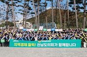 [경남도민뉴스=최인태 기자] 전라남도의회는 11월 17일 오전, 전남도청 앞 사거리에서 지역경제 활성화를 위한 가두캠페인을 진행했다. 이번 캠페인은 지역 상권에 활력을 불어넣고, 착한 선결제 문화 확산, 지역사랑상품권 사용 장려 등 도민이 일상에서 실천할 수 있는 따뜻한 소비문화 확산을 목적으로 마련됐다. 이날 캠페인은 김태균 의장 등 도의원과 의회사무처 직원 등 100여 명이 참여해 전남도청 사거리 8개 방향에서 플래카드와 어깨띠, 피켓을 이용한 홍보활동을 펼쳤다. 참여자들은 출근길 보행자와 운전자를 대상으로 지역경제 회복의 필요성을 알리며 소상공인과 지역상권을 향한 응원 메시지를 전했다. 김태균 의장은 현장에서 “골목상권과 전통시장 살리기 위한 도민 한 분 한 분의 소중한 소비가 지역경제를 지탱하는 큰 힘이 된다.”며, “전남도의회도 도민과 함께 침체된 민생경제 회복에 적극적으로 앞장서겠다.”고 말했다. 전라남도의회는 이번 캠페인을 통해 도내 지역 상권과 소상공인에 대한 도민의 관심이 더욱 확산되기를 기대하고 있다. 한편 도의회는 지역경제 회복을 위해 최근 전개한 ‘전통