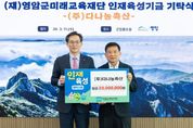 [경남도민뉴스=최인태 기자] 김종섭 ㈜다나농축산 대표가 11일 (재)영암군미래교육재단에 인재육성기금 2,000만원을 지정 기부했다. 특히, 기부금 절반인 1,000만원을 모교인 장천초등학교 학생들을 위해 써달라고 부탁했다. 김 대표는 “고향인 서호면의 학생들이 더 넓은 세상을 경험하고 꿈을 키울 수 있는 교육 환경이 마련되길 바란다. 지역 인재의 성장에 보탬이 되면 좋겠다”라고 말했다. 김 대표는 영암군 서호면 출신 기업가로, 이번 기부를 포함해 재단에 5,000만원의 누적 기부금을 달성했다.