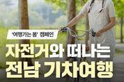 [경남도민뉴스=백형찬 기자] 전남 구석구석 애정하는 나의 자전거와 함께 전남 여행상품을 혜택받고 이용하세요! ◆ 자전거 전용 관광열차를 타고 '여행가는봄' 여행상품 최대 3만 원 할인 · 섬진강 벚꽃(당일) : 4. 5(토), 4. 6(일) · 전남 서해안(1박2일) : 4. 26(토) ~ 4. 27(일) · 장성 황룡강(당일) : 5. 11(일) · 담양호, 영산강(당일) : 5. 25(일) · 해남 화원반도(1박2일) : 5. 31(토) ~ 6. 1(일) ☞ 여행가는달 누리집 또는 ☎1644-7786 문의