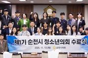 [경남도민뉴스=최인태 기자] 순천시의회는 지난 13일 순천시의회 본회의장에서“제1기 순천시 청소년의회 제2차 본회의 및 수료식”을 개최하고, 제1기 청소년의회 활동을 성공적으로 마무리했다. 지난 7월 공개모집을 거쳐 총 21명의 청소년의원으로 구성된 제1기 청소년의회는 9월 발대식을 시작으로 문화경제위원회(10명)와 도시건설위원회(11명), 2개의 상임위원회가 상임위원회 활동, 국회 방문 등 다양한 의정 활동을 진행해 왔다. 어제 열린 제2차 본회의에서는 상임위원회 활동을 통해 도출된 정책제안을 본회의 안건으로 상정해 토론과 표결을 직접 진행하는 등 실제 시의회의 의사운영 절차를 그대로 체험했다. 특히 이 과정에서 청소년의원들은 시정 전반에 대한 관심과 문제의식을 바탕으로 ▲학원에 다니지 않아도 모두가 함께 배우는 학교(신흥중1 이슬) ▲습지를 파괴하는 도시를 생태수도로 부를 수 있는가(금당고1 정우균) ▲가로등 개선을 통한 안전한 여성안심귀가길 조성(효천고2 안준성, 순천고1 김민수)에 대한 3건의 자유발언을 진행했다. 이어 ▲횡단보도와 버스정류장 등 편의시설 확충(향림중1 박찬현) ▲순천시 청소