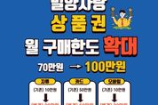 [경남도민뉴스=나희준 기자] 밀양시는 지역경제 활성화를 위해 밀양사랑상품권의 월 구매 한도를 8월 1일부터 기존 70만 원에서 100만 원으로 확대한다고 밝혔다. 기존 한도는 지류 10만 원, 카드 50만 원, 모바일 10만 원으로 총 70만 원이었으나, 이번 조정으로 각각 10만 원씩 상향돼 지류 20만 원, 카드 60만 원, 모바일 20만 원으로 총 100만 원까지 구매할 수 있게 됐다. 시는 발행 수단별 한도를 균형 있게 조정함으로써 시민들의 선택 폭을 넓히고, 골목상권의 실질적인 매출 증가를 기대하고 있다. 지류 상품권은 지역 내 농협, 경남은행, 신협, 새마을금고, 산림조합 등 밀양시와 협약을 맺은 49개 금융기관에서 구매할 수 있다. 밀양사랑카드는 전용 앱 또는 협약 금융기관을 통해 충전할 수 있으며, 모바일 상품권은‘비플페이 앱’에서 간편하게 구매할 수 있다. 안병구 시장은 “지역사랑상품권은 지역경제에 실질적인 활력을 불어넣는 시책이다”라며 “이번 한도 확대가 시민과 소상공인 모두에게 도움이 되길 기대한다”라고 밝혔다.
