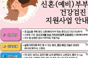 [경남도민뉴스=김태수 기자] 고성군은 첫 임신을 계획 중인 신혼부부 및 예비부부의 건강한 임신과 행복한 가정생활을 돕고자 2021년 7월부터 혼인신고 3년 이내 부부 또는 예비부부를 대상으로 무료 건강검진을 지원하고 있다. 사업대상은 신청일 기준 6개월 이전부터 부부 중 한명만이라도 관내에 주민등록을 두고 실제 거주하는 신혼부부 및 예비부부일 경우 지원 가능하며, 준비서류는 주거 확인 가능한 등본과 혼인 확인 가능한 청첩장(예식장계약서), 신분증을 지참하여 보건소 방문 신청하면 된다. 검진기관은 보건소와 관내 산부인과 강병원에서 실시한다. △1차 검진은 부부 대상으로 고성군보건소에서 혈액검사등 11개 항목에 대해 건강검진을 실시하고, △2차 검진은 강병원에서 여성을 대상으로 풍진검사 및 자궁 초음파 등 4개 항목에 대해 실시한다. 이을희 보건소장은 “임신 전 필수검사(풍진 항체, B형 간염 등)를 통해 난임과 유산 위험 요인을 확인하고 관리함으로 건강한 임신으로 미숙아·장애아 등 발생을 줄이고 행복한 출산 장려 도모할 수 있도록 최선을 다하겠다”라고 말했다. 기타 자세한 사항은 고성군보