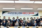 [경남도민뉴스=최인태 기자] 여수시의회는 지난 12월 15일 오후 1시 시의회 소회의실에서 전체 의원 및 의회사무국 직원을 대상으로 '2025년 장애인식개선교육'을 실시했다. 이번 교육은 의회 구성원들이 장애에 대한 올바른 이해와 공감을 바탕으로 포용적이고 존중받는 조직문화를 확립할 수 있도록 마련됐다. 이날 강의는 강세웅 강사(사이영사회적협동조합 대표)가 맡아 ‘공감과 존중’을 주제로 장애에 대한 인식 개선과 차별 해소의 중요성을 중심으로 진행했다. 강 강사는 휠체어댄스스포츠 국가대표 출신으로, 장애인식개선교육 전문강사로서 현재까지 1,700회 이상의 강의를 진행한 바 있으며, 2025년 보건복지부 사회적 장애 인식개선 유공 표창을 수상한 바 있다. 여수시의회는 이번 장애 인식개선 교육을 통해 장애에 대한 편견을 줄이고, 의정활동 전반에서 인권과 다양성이 존중되는 의회 운영을 강화해 나간다는 방침이다. 백인숙 의장은 “이번 교육이 장애에 대한 이해를 넓히는 계기가 되어, 시민 모두가 존중받는 여수시를 만들어가는 데 밑거름이 되기를 기대한다”고 밝혔다.
