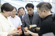[경남도민뉴스=박만수 기자] 보은군은 22일 송미령 농림축산식품부 장관이 보은군을 방문해 추석 성수품인 사과 생육 및 출하 현황을 점검하고 현장 관계자들을 격려했다. 이날 행사에는 송미령 장관을 비롯해 최재형 보은군수, 홍인기 유통소비정책관, 용미숙 충청북도 농정국장, 윤대성 보은군의회 의장, 허장행 농협경제지주 과수과채사업국장, 박철선 충북원예농업협동조합장 등 관계자 40명이 참석했다. 송 장관은 삼승면 우진리 소재 사과 농가를 찾아 사과 생육과 수확 현황을 살펴보고, 이어 보은과수거점산지유통센터(APC)를 방문해 선별·포장 작업장을 시찰하며 추석 성수기 출하 계획을 보고 받았다. 군에 따르면 APC는 농림축산식품부 공모사업으로 조성된 현대화 유통시설로, 세척·선별·포장 및 저온저장 등 자동화 시스템을 갖추고 연간 8천 톤 규모의 과수를 처리할 수 있다. 현재 약 350호 농가가 참여해 올해 사과 1,000톤을 매취해 약 50억원을 판매했으며, 올 추석에는 지정출하 300톤, 일반판매 700톤, 수탁 200톤 등 출하 물량을 차질 없이 준비하고 있다. 현장 점검 자리에서 송미령 장관은 “국민들께