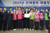 [경남도민뉴스=최인태 기자] 전라남도교육청과 전국학교비정규직연대회의가 15일 교육 현장의 노사 상생을 통한 교육 공무직원의 권익 신장과 근로 여건 개선을 골자로 한 ‘2025년 단체협약’을 체결했다. 이날 전남교육청에서 열린 체결식에는 김대중 전남교육감과 연대회의(참여노조: 전국학교비정규직노동조합, 공공운수노동조합 전국교육공무직본부, 전국여성노동조합) 각 노조 대표자를 포함한 양측 관계자 30여 명이 참석해 협약서에 서명하며 상호 발전을 약속했다. 본문 118개 조, 직종별 37개 조, 부칙 7개 조 등 총 159개 조로 구성된 이번 단체협약은 교육공무직의 근로 여건 개선과 노동강도 경감 등 근로 환경을 획기적으로 개선하는 내용을 담고 있다. ▶복지 향상 및 휴가 확대 질병으로 인한 유급병가 기간을 기존 30일에서 60일로 두 배 확대하여 공무원과 동일하게 반영함으로써 교육공무직들의 건강권이 강화됐다. 또한, 장기재직휴가가 신설되어 10년 ~ 20년 미만 5일, 20년 이상 10일의 유급 휴가를 사용할 수 있게 됐다. ▶출산, 육아 지원 강화 배우자 출산휴가가