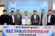 [경남도민뉴스=최인태 기자] 영광군은 11월 5일 경기 화성시 정조효공원 야외무대에서 열린 ‘제7회 대한민국 솔라리그(K-Solar League) 시상식’에서 기후에너지환경부장관상을 수상했다고 10일 밝혔다. ‘대한민국 솔라리그’는 기후위기대응·에너지전환지방정부협의회, 전국지속가능발전협의회, 한국에너지공단, 한국태양광산업협회, 한국태양광공사협회, 한국RE100협의체가 공동으로 주최해 재생에너지 보급 확대와 탄소중립 실현에 기여한 우수 지자체, 공공기관, 민간 업·단체를 발굴하고 포상하는 전국 규모 대회로 올해 7회째를 맞는다. 이번 수상에서 영광군은 △재생에너지 자립률 104% 달성 △군민 참여와 개발이익 공유 조례 제정과 발전 이익을 군민 기본소득으로 지급하는 공유화 기금 조례 제정 △주민주도형 ‘재생에너지 발전 주민참여제도’를 활성화를 위한 읍면별 주민설명회를 여러 차례 개최하여 주민 의견을 폭넓게 수렴한 점 등 혁신적인 정책 추진 노력을 높게 평가받았다. 특히, 염산면 월평마을의 3MW급 전국 최대 규모 주민 주도 영농형 태양광 발전단지는 주민이 56% 지분을 소유하여 마을 28가구에 발전 수익을 배분하는