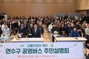 [경남도민뉴스=김용욱 기자] 연수구가 지난 12일부터 14일까지 진행한 ‘공영버스 및 교통인프라 주민설명회’가 주민 300명이 참석한 가운데 성황리에 마무리했다고 18일 밝혔다. 이번 주민설명회는 연수구 공영버스 도입 설명을 비롯해 개인형 이동장치(PM) 단속 강화, 원도심 공영주차장 확충 등 교통 관련 주요 개선 사항에 대한 주민들의 의견을 수렴하기 위해 마련됐다. 주민설명회에 참석한 주민들은 송도동에 투입될 공영버스 노선 운영에 대한 다양한 의견을 제시했다. 주요 의견으로는 ▲공영버스 인천지하철 1호선 인천대입구역 경유, ▲송도 6공구 내 정류장 변경 등 공영버스 노선 관련 제안 사항이 주를 이뤘다. 구는 주민들의 의견을 충분히 검토한 뒤, 실현 가능성이 있는 의견부터 정책에 반영한다는 계획이다. 특히 인천대입구역 경유 방안과 송도 6공구 내 정류장 변경 요청에 대해서는 전문가 자문을 통해 배차간격과 효율성을 고려한 노선 설계를 검토할 예정이다. 이와 함께 구는 구체적인 노선별 정류장 위치 확정과 배차간격 조정, 환승 패턴 분석 등을 통해 주민들의 교통 불편을 최소화한