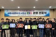 [경남도민뉴스=도문호 기자] 세종특별자치시 상하수도사업소가 지속가능한 경영 실현을 위해 ‘안전과 품질로 보장된 세종의 맑은 물’을 비전으로 환경사회지배구조(ESG) 경영을 선포했다. 상하수도사업소는 9일 조치원 복합커뮤니티센터 소강당에서 이동윤 소장을 비롯한 전 직원 60여 명이 참석한 가운데 환경사회지배구조(ESG) 경영 선포식을 개최했다. 상하수도사업소는 ▲지속가능한 성장을 위한 친환경 경영체계 구축(E), ▲상생과 안전을 기반으로 한 사회적 책임 이행(S), ▲시민이 신뢰할 수 있는 공정하고 투명한 경영(G)을 목표로 내세웠다. 특히 미래세대를 위한 환경보전의 중요성을 인식하고 물 자원의 효율적 관리, 에너지 절약, 환경오염물질 저감을 목표로 친환경 경영을 실천할 계획이다. 또 시민들에게 안전하고 깨끗한 물을 공급하며 지역사회와 함께 성장하는 다양한 사회공헌 활동도 이어나갈 방침이다. 이동윤 상하수도사업소장은 “환경사회지배구조(ESG) 경영 선포는 우리 사업소가 친환경·지속 가능한 물 관리를 실천하고 지역사회와 상생하겠다는 의지를 담고 있다”며 “조직 전반에 이를 내재화하고 실천해