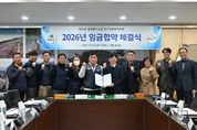 [경남도민뉴스=최인태 기자] 장수군은 군청 2층 회의실에서 전국공공운수노조 전국자치단체공무직본부 장수군지부(지부장 윤동수, 이하 ‘장수군 공무직지부’)와 2025년 임금협약을 체결했다고 26일 밝혔다. 이날 협약식에는 최훈식 장수군수를 비롯한 노사 양측 교섭위원 11명이 참석했으며 협약서 서명을 통해 장수군 공무직지부와 2025년·2026년 임금협약을 확정했다. 이번 협약은 올해 7월부터 노사 간 상견례, 실무교섭 등을 거쳐 추진됐으며 상호 신뢰와 존중을 바탕으로 합리적인 합의를 도출한 점에서 의미가 크다. 주요 협약 내용은 기말상여금 인상과 통상임금에 포함되는 임금 항목 변경 사항 반영이다. 군은 재정 여건을 종합적으로 고려하는 한편, 공무직 근로자의 처우 개선과 안정적인 노사관계 구축을 동시에 도모하는 데 중점을 두고 협의를 진행했다. 특히 2024년 12월 19일 대법원 전원합의체 판결로 통상임금 산정 기준이 변경된 것과 관련해 해당 판결의 취지를 반영하여 공무직 근로자의 통상임금 항목을 조정함으로써 제도적 정합성과 노동자의 권익을 함께 고려했다. 장수군은 이번 협약을