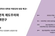 [경남도민뉴스=구인애 기자] 경상국립대학교 사회과학연구원(원장 송원근 경제학부 교수)은 7월 16일 오후 4시 서울대학교 인권센터 김올튼 선임연구원을 초청해 ‘담론적 제도주의와 정책연구’라는 주제로 강연회를 개최한다. 이 강연회는 담론적 제도주의의 접근을 통해 제도와 정책을 어떻게 설명, 분석할 수 있는지 탐색한다. 특히, 작년부터 시행된 ‘외국인 가사관리사 시범사업’ 정책 사례를 중심으로 단지 정책 과정이나 제도를 설명하는 하나의 변수로서 담론을 다루는 것을 넘어서, 담론적 렌즈를 통해 제도와 정책 과정을 재고찰해 보이고자 한다. 이 강연회는 경상국립대학교 사회과학관 사회조사분석실(151동 220호)에서 개최되며, 사회과학연구원에 전화 또는 전자우편으로 문의해 참여할 수 있다.