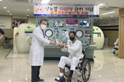 [경남도민뉴스] 의료법인승연의료재단 삼천포서울병원은 지난 21일 13시 고압산소치료센터에서, 전국 1500여명의 당뇨족부괴사(당뇨발) 환자를 절단의 위기에서 완치될 수 있게 하고, 5,000여명의 절망에 빠져있는 중증 질환자에게 고압산소치료로, 새 생명과 희망을 갖게 한 기념행사를 가졌다. 이날 행사에는 어려운 여건에도 불구하고 우리병원에 방문하여 몇 개월 동안 고압산소치료를 통하여 불굴의 의지로 병마를 이겨내어 완치 퇴원하는 두 명의 환자에게 생활격려금을 전달하였다. 삼천포서울병원은 2013년 10월부터 전국최초로 특수치료‧고압산소치료를 겸한 ‘당뇨족부괴사 중점치료실’을 개소하여 운영하고 있다. 해외 9명, 서울‧경인 141명, 강원 45명, 대전‧충청 89명, 광주‧전라 217명, 부산‧울산 149명, 경남 702명, 대구‧경북 137명, 제주 11명 등 총 1500여명의 당뇨합병증(당뇨족부괴사, 버거씨병) 환자를 치료했고, 5,000여명의 중증 질환자(당뇨합병증, 뇌혈관장애, 뇌경색, 뇌기능장애, 암치료를 위한 방사선 치료 후, 가스중독, 약물중독, 혐기성 세균 감염증, 돌발성 난청, 화상, 감압병(잠수병) 환자에게 고압산소치료