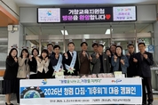 [경남도민뉴스=최재경 기자] 울주군 범서읍이 25일 범서읍 행정복지센터 소회의실에서 김효준 범서읍장과 15개 지역단체 대표가 참석한 가운데 ‘1단체 1구역 환경지킴이’ 발대식을 개최하고 봄맞이 환경정화활동을 실시했다. 1단체 1구역 환경지킴이 활동은 범서읍 각 단체가 자율적으로 참여해 환경 취약지역을 맡아 정화활동과 불법 쓰레기 감시활동을 펼치는 환경보호 실천운동이다. 범서읍민 스스로 맑고 깨끗한 생활환경을 조성하고 살기 좋은 지역사회를 만들어 가기 위해 추진됐다. 이 사업은 2023년 특수시책으로 12개 단체가 참여해 처음 시작됐으며, 2024년 13개 단체, 지난해 14개 단체로 확대되며 활발한 활동을 이어왔다. 특히 지난해에는 총 80회 활동에 2천266명이 참여해 쓰레기 33t을 수거하며 지역 환경 개선에 크게 기여했다. 이날 발대식에서는 15개 단체가 15개 환경 취약지 관리구역을 맡는 협약을 체결했으며, 발대식 이후에는 자유총연맹범서위원회 회원 등 250여명이 천상1교 사거리 일대 도로변에서 쓰레기 수거 및 환경정화 캠페인을 펼쳤다. 김효준 범서읍장은 “1단체 1