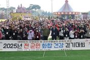 [경남도민뉴스=최인태 기자] 전남 함평군이 군민 화합과 건강 증진을 위해 ‘2025 대한민국 국향대전’과 연계해 건강 걷기 행사를 개최했다. 함평군은 6일 “2025년 전 군민 화합 건강 걷기 행사가 지난 5일 대한민국 국향대전 주무대 일원에서 성황리에 마무리됐다”고 밝혔다. 이번 행사는 ‘2025 대한민국 국향대전’과 연계해 추진된 건강생활실천 분위기 조성 프로그램으로, 지역 주민과 축제 관람객 등 500여 명이 함께 참여했다. 참가자들은 주무대에서 준비체조를 마친 뒤, 수산봉 천지길과 맨발 황토길, 함평천지다리를 잇는 약 2km 코스를 걸으며 국화의 향기와 함께 가을철 함평의 매력을 온몸으로 만끽했다. 또한 군은 걷기 행사와 더불어 건강생활실천 홍보부스를 운영해 신체활동, 영양, 비만, 절주 등 통합건강관리 정보를 제공하고, 건강 홍보 물품을 배부하는 등 군민들의 큰 호응을 얻었다. 이상익 함평군수는 “이번 행사는 군민 모두가 즐겁게 참여하며 건강의 중요성을 되새기고, 생활 속 건강실천을 확산하는 뜻깊은 시간이었다”며 “앞으로도 지역 축제와 연계한 다양한 건강증진 프로그램을 지속 추