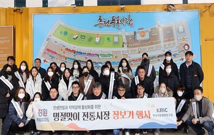 [경남도민뉴스=표재민 기자] 한국기후변화연구원은 1월 22일, 설 명절을 맞아 침체한 전통시장에 활기를 불어넣고 지역 경제 활성화를 위해 춘천 풍물시장에서 ‘설맞이 전통시장 장보기 행사’를 개최했다고 밝혔다.
