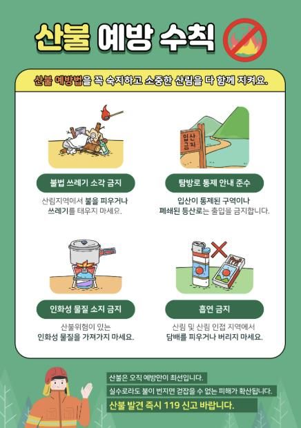 소방서는 주민들이 안전하고 건강한 봄을 맞이할 수 있도록 지속적으로 산불 예방 활동을 강화할 예정이며, 적극적인 협조를 부탁드린다고 밝혔다.