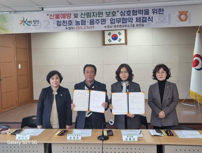 [경남도민뉴스=김춘호 기자] 합천군 용주면과 합천호 농협은 5일 용주면 산불 예방 및 산림자원 보호를 위한 업무협약(MOU)을 체결했다.