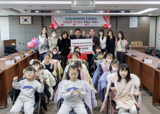 산들어린이집(국공립) 운영위원회는 75세 이상 어르신에게 점심을 드리는 ’주민참여 효도밥상‘ 사업을 위해 바자회로 모금한 177만 4,000원을 후원했다.