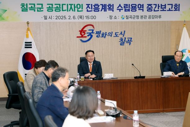 [경남도민뉴스=최민숙 기자] 칠곡군은 지난 6일 공감마루 회의실에서 김재욱 군수를 비롯해 군의원, 관계 공무원, 용역회사 대표 등 30여 명이 참석한 가운데‘공공디자인 진흥계획 수립 용역’ 중간보고회를 개최했다.