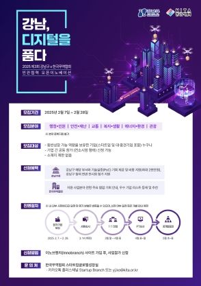[경남도민뉴스=김완호 기자] 꿈이 모이는 도시, 미래를 그리는 강남구가 한국무역협회와 함께 민관협력 오픈 이노베이션 제3회 ‘강남 디지털을 품다’를 추진, 2월 7일부터 28일까지 참가 기업을 모집한다.