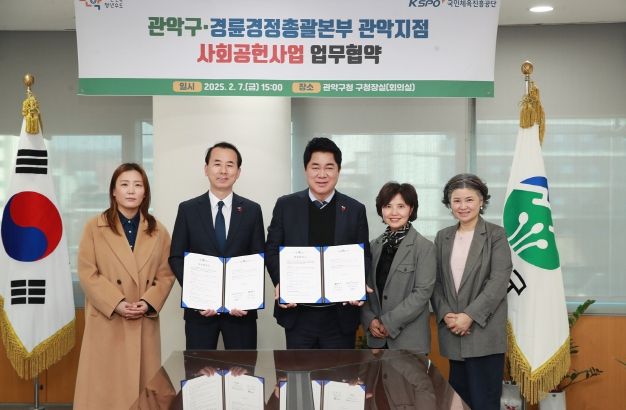 [경남도민뉴스=류종길 기자] 관악구가 지난 7일 관내 취약계층 지원 및 지역사회복지 증진을 위해 국민체육진흥공단 경륜경정총괄본부 관악지점과 ‘사회공헌 지원사업’ 업무협약을 체결했다.