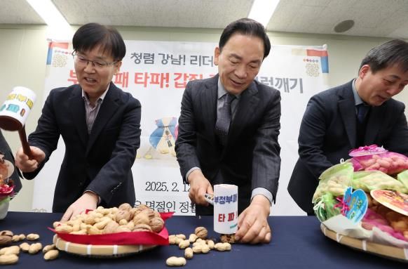 [경남도민뉴스=김완호 기자] 꿈이 모이는 도시, 미래를 그리는 강남구가 정월대보름을 맞아 12일 구청 로비에서 ‘부정부패·갑질 타파! 부럼 깨기’ 행사를 열고, 청렴한 조직 문화를 만들기 위한 결의를 다졌다.